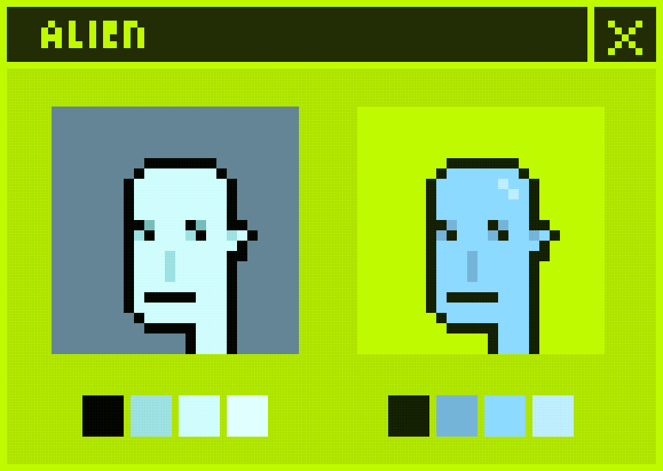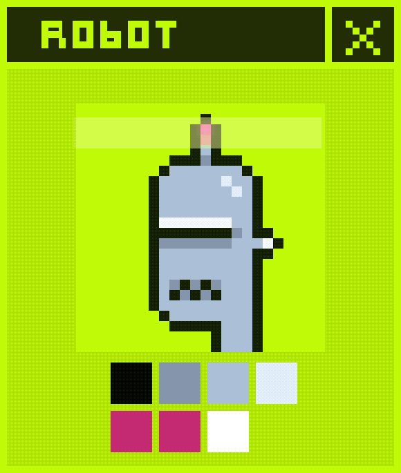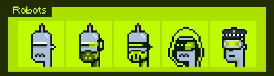 Inspired from the original bot phunks by @iape.eth and big phunk icons. with a cooler color suit upgrade and neon green-themed VR