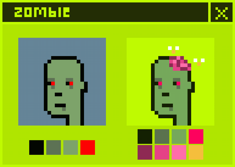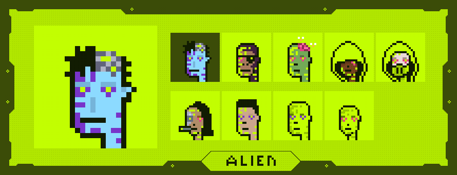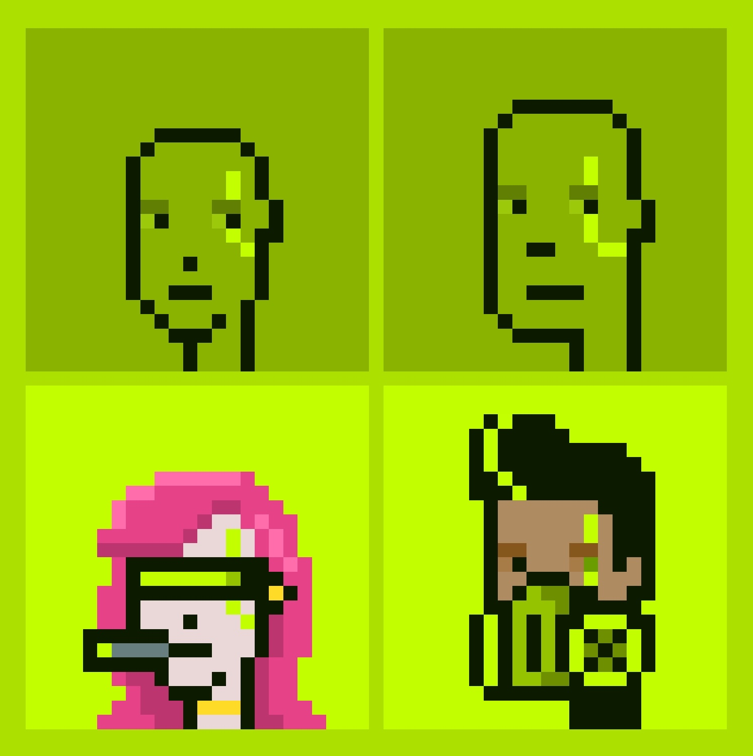 The colors are neon green, white, purple and even pink. We brought updates to the models from OG Phunks, such as Cyberbrain, Pompadour, Pink rose and even Exotic black. Many of them can be revealed as follows