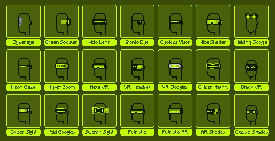 For this part, since dystophunks are future-themed, you can see that there are tons of VR goggles with various models. This is triggered because the environment requires these accessories to be adaptable.